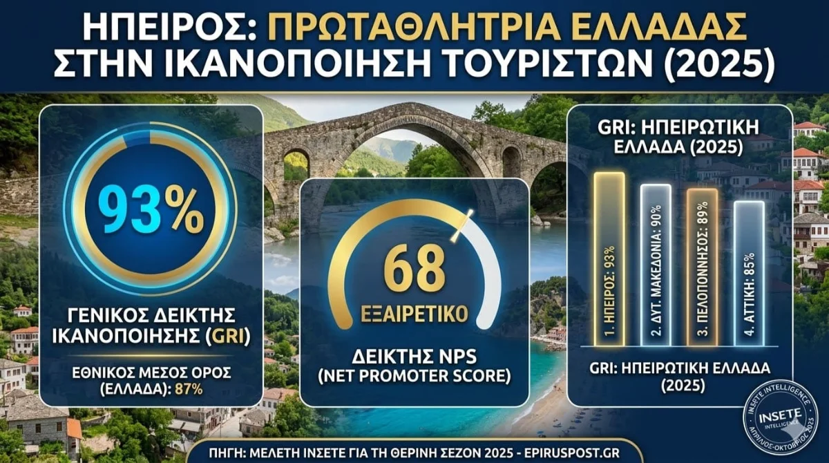 Η εικόνα συμπληρώνεται από ισχυρές επιδόσεις: η Ήπειρος κατακτά την κορυφή στον ελληνικό τουρισμό, ενώ το αεροδρόμιο των Ιωαννίνων σημειώνει τη μεγαλύτερη αύξηση διεθνών αφίξεων στη χώρα.